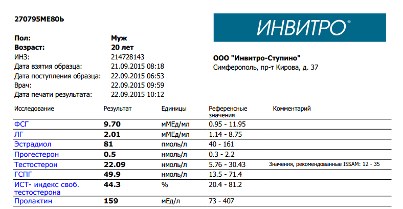 все нормально, можно садится, пролактин ниже среднего значения - идеальноПривет Кочки!. Хочу курсануть и сделал анализ. 3 мес. назад был курс проп(50ч\д)+винстрол иньекции(25мг ч\д) на 6 недель в конце курса чесались соски закинулся тамоксом и прошло .На ПКТ был тамокс месяц по 20 мг + цинк+трибулус + вит Е (капсулы) Сейчас планирую такой же курс но по длительнее( 10 нед ) Знаю что детские дозироввки но на мне сработали и мне понравилось, к тому же сам выступающий кикбоксер(мма) в больших дозняках не нуждаюсь. Скажите пожалуйста можно ли садится на курс или нет????.Буду признателен за помощь.![]()