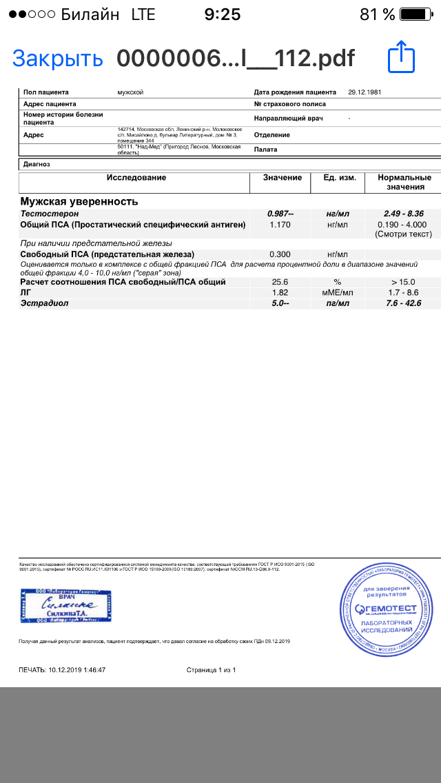 Тестостерон нормальный вполне