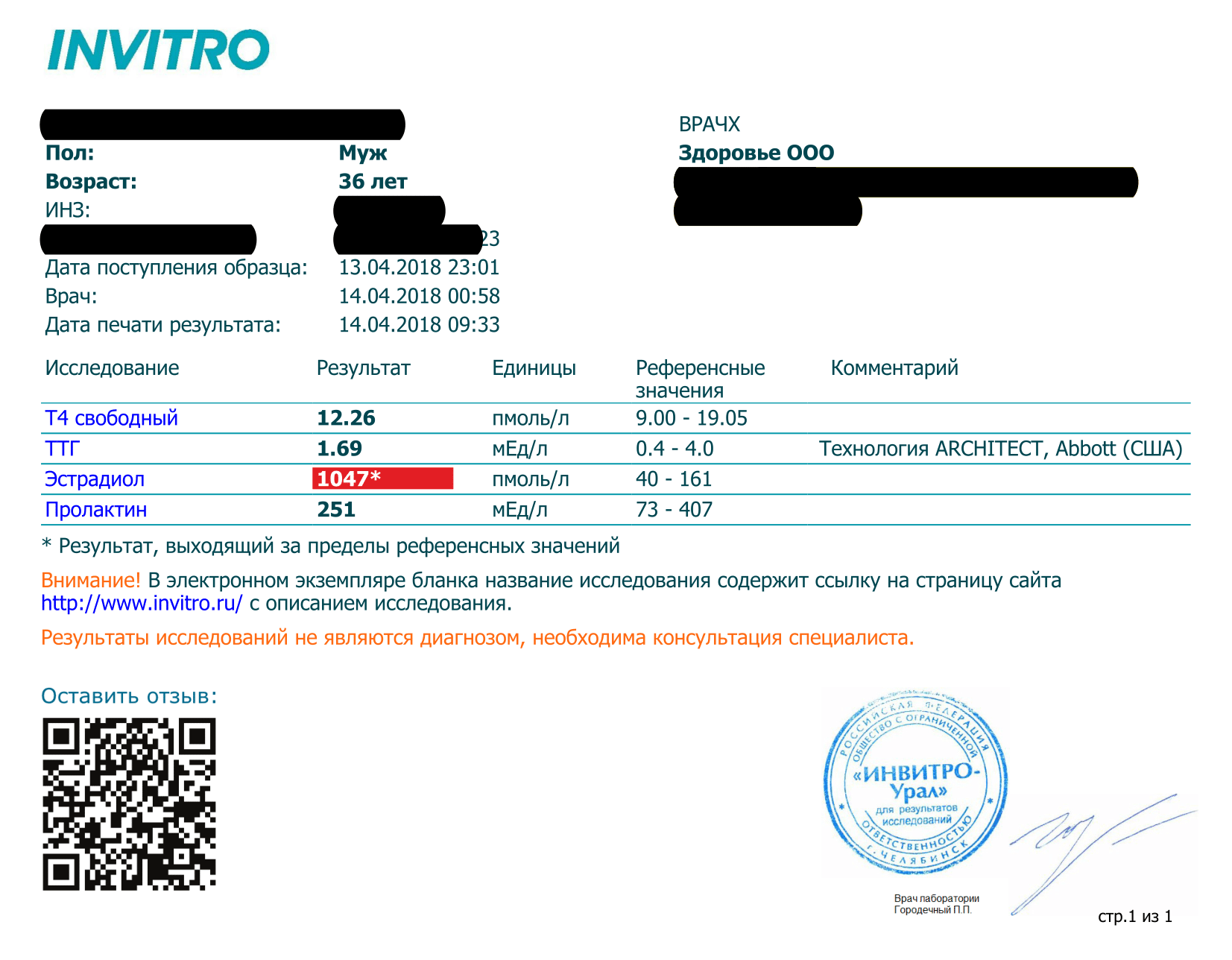Т.к. консультируюсь с PartyKill, Он сказал пересдать в ИНВИТРО. И результаты оказались очень даже положительными, трен рабочий.